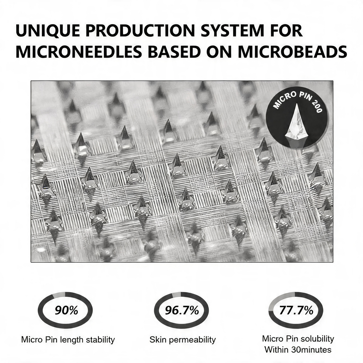 Microneedle technology uses ultra-fine, dissolvable microstructures designed to interact with the outermost layer of the skin. Unlike traditional methods that rely on ingestion, this approach is designed to support the delivery of functional ingredients through a more direct and controlled pathway. Engineered for comfort and simplicity, it represents a shift toward more seamless, everyday wellness solutions.